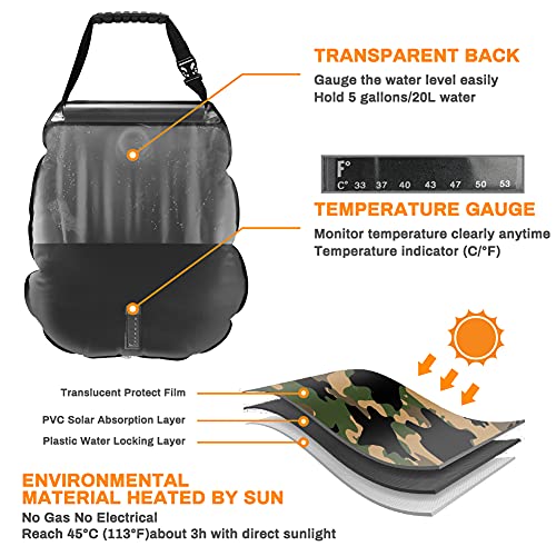 Doccia Solare Campeggio Upkey 20L Borsa da Campeggio Solare Borsa Doccia Sacca Campeggio Portatile con soffione doccia commutabile on-off per escursioni in arrampicata all'aperto