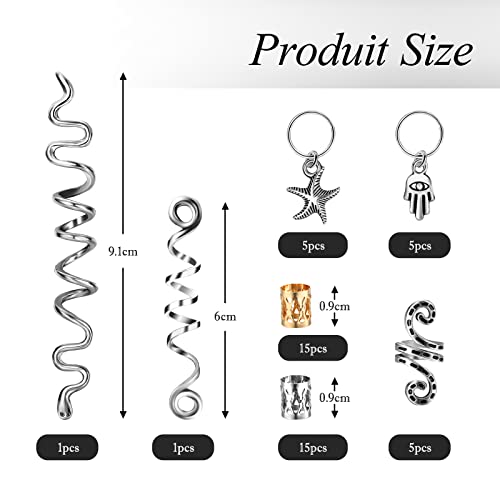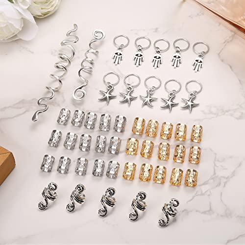 Set super valore: il set contiene 47 passanti per dreadlock, include clip a spirale per capelli dorati, anelli per capelli Starfish e anello per capelli Hamsa, polsini in metallo regolabili. È possibile utilizzare uno o più anelli per trecce contemporaneamente per creare diverse acconciature. La quantità è sufficiente per le esigenze quotidiane.