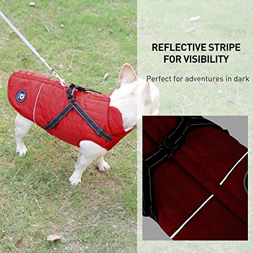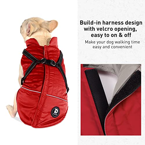 Dociote Cappotto per Cani con Pettorina taglia piccola, Riflettente e Regolabile Impermeabile Cappottino Cane, Giacca Invernale per Cani di taglia Piccola e Media Rosso XL