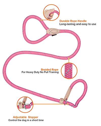 Dociote Guinzaglio per Cani in Nylon 1,5 m Guinzaglio Addestramento per Cani con Fibbia Regolabile e Riflettente Guinzaglio Retriever per Formazione Cani di Taglia Grande Media Piccola Rosa 0.8*150CM