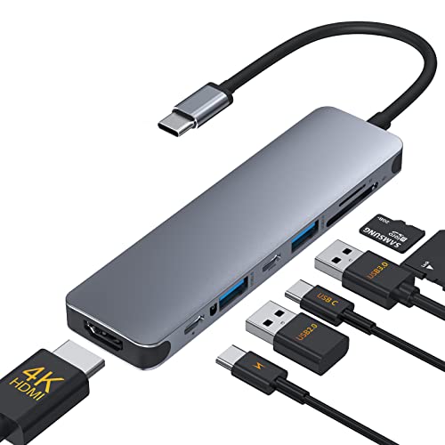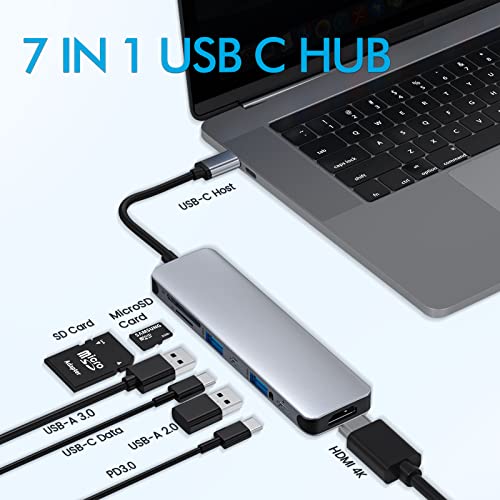 Hub USB C 7 in 1, dock adattatore multiporta USB C con HDMI 4K, 100W PD, USB 3.0/2.0, lettore di schede SD/TF, unità USB C compatibile con MacBook Pro, laptop e altri dispositivi di tipo C