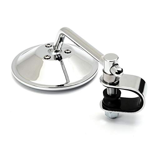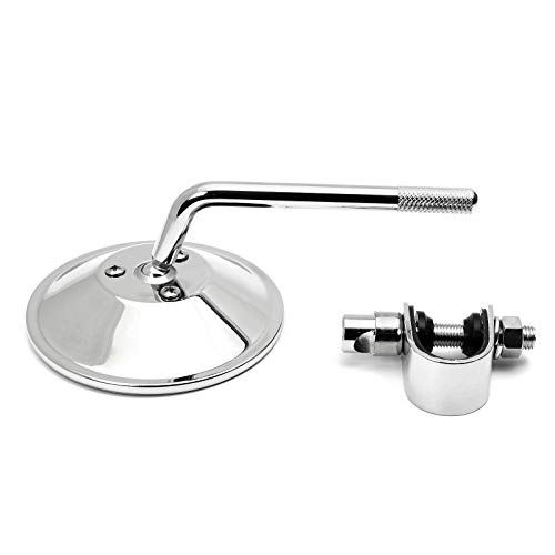Dock66 Motorcycle Parts Specchietto rotondo personalizzato da 10,2 cm, cromato, con braccio corto e morsetto per manubrio