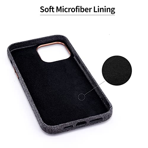 Dockem Custodia per Carte in Tessuto per iPhone 13 Pro Max con Piastra in Metallo Integrata per Montaggio Magnetico, Portafoglio Cucito con 2 Porta Carte, 6.7" M2F [Grigio/Marrone Chiaro]