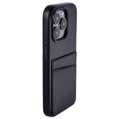 Dockem Custodia per Carte in Vera Pelle per iPhone 15 Pro con Piastra Metallica Integrata per Montaggio Magnetico, Portafoglio Cucito con 2 Tasche per Carte di Credito (Nero, M2GL)