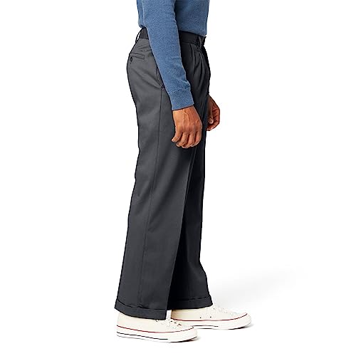 Dockers Men's Relaxed Fit Comfort Khaki Cuffed Pants-Pleated D4, Dark Charcoal Heather (Stretch), 30W x 32L