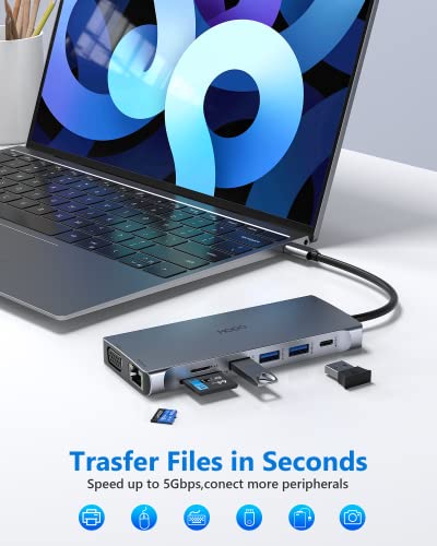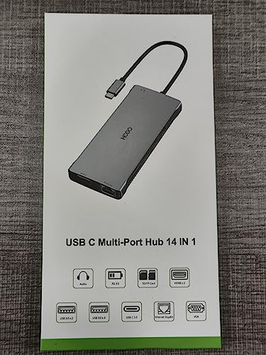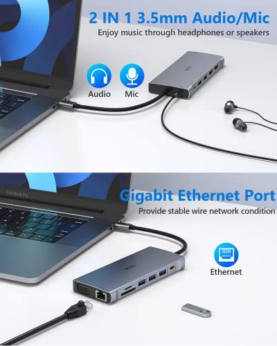 Docking station USB-C 14 in 1: combina perfettamente la funzione di hub USB C e docking station, trasformando la porta USB di tipo C a doppio monitor HDMI 4K, VGA, Gigabit Ethernet, 3 USB 3.0, 2 USB 2.0, alimentazione da 100 W, porta di trasferimento dati USB C (5 Gbps), lettore di schede SD e TF e porte microfono/audio da 3,5 mm. La docking station per laptop HODO può aumentare la produttività nell'ambiente domestico significativo antly (supporta monitor tripli). ★Nota: si prega di confermare la porta e la funzione (DP Alt Mode) del dispositivo prima dell'acquisto.