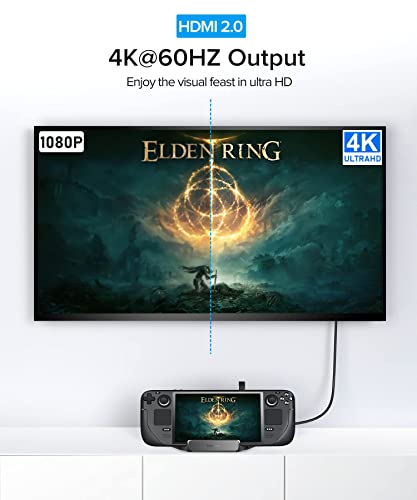 ⚡[Uscita HDMI 4K @ 60 Hz] Il supporto dock per Steam Deck è dotato di un'uscita HDMI 1.4 4K @ 60 Hz. Chip integrati avanzati, plug and play, supporta HDCP 2.0 per riprodurre contenuti protetti da iTunes/Netflix/DirectTV ecc. Quando colleghi un monitor 4K esterno (1080P), può offrirti un'esperienza visiva più nitida e fluida, così puoi goderti la festa della vista sui tuoi giochi.