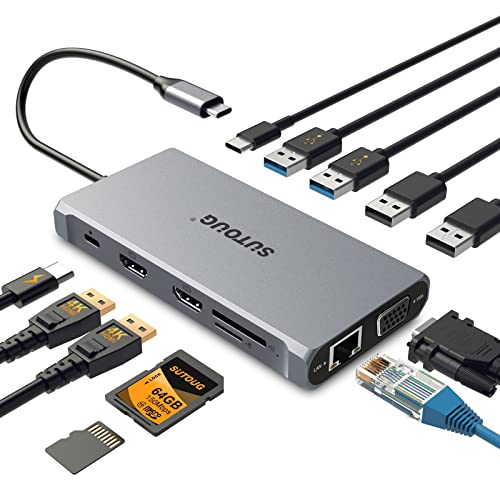 Hub USB C, Docking Station SUTOUG, Dongle adattatore USB C 12 in 1 con doppio HDMI 4K VGA 1080P 1000Mbps Ethernet PD 3.0 100W USB-C 3.0 Slot per scheda TF/SD Docking per laptop MacBook USB-C Laptop