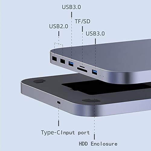 Docking Station di Tipo C con Contenitore per Disco Rigido Integrato, estensore per Computer con Porta USB3.0 + Porta USB2.0 + Slot per Scheda TF/SD + interfaccia SATA, per Mac Mini