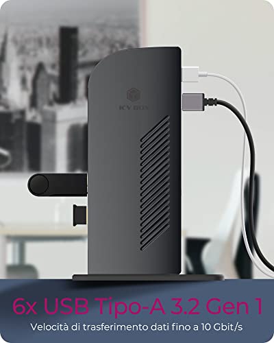 ICY BOX Docking Station USB 3.0 / USB-C (11-in-1) con 2x DisplayPort (4K 60Hz), 6x USB 3.0 HUB, Gigabit Ethernet, DisplayLink, Dock Universale, IB-DK2242AC