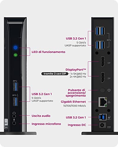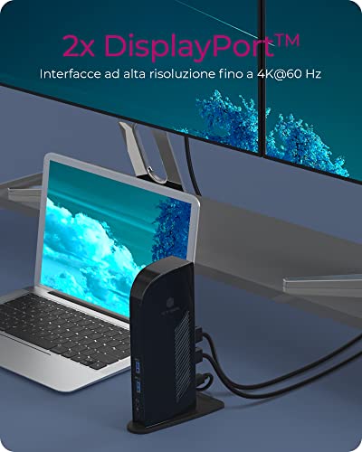 ESPANSIONE MULTIPLA: con un solo cavo, gli utenti possono trasformare il loro notebook in una workstation desktop con sei porte USB aggiuntive, 2 DP, Gigabit Ethernet e due ingressi/uscite audio.