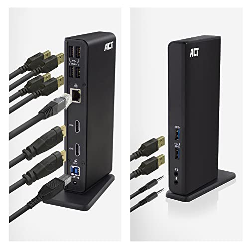 ACT Docking Station USB A e USB-C 11 in 1, 2 porte HDMI, 2 porte USB 3.0, 4 porte USB 2.0, Gigabit Ethernet, microfono e cuffie audio Jack da 3,5 mm - AC7049