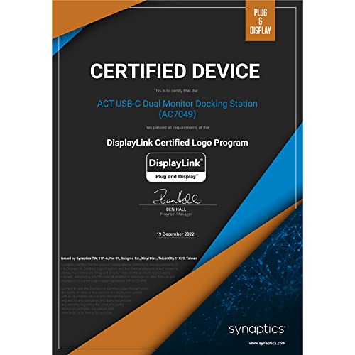 PER MACOS E WINDOWS: la docking station utilizza la tecnologia DisplayLink. Installare il driver DisplayLink e godere di 3 diverse visualizzazioni del monitor. Funziona su computer con supporto USB C o USB A 3.0 (o superiore).