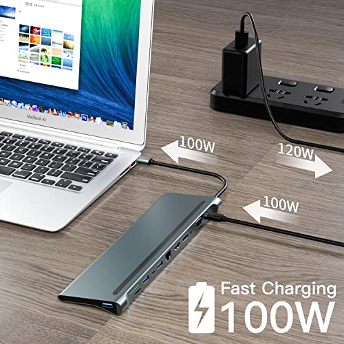 Docking Station, 12 in 1 USB C Hub, with 4K 30Hz HDMI,DP,VGA, 100W PD, 4 USB3.0,SD/TF Reader,Ethernet RJ45,3.5mm Audio for HP/MacBook/Dell/Lenovo Laptops.
