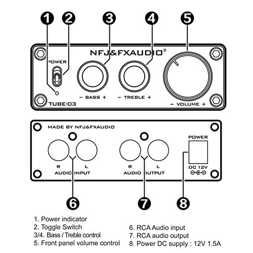 Docooler FX-Audio Mini HiFi Audio Preamplificatore 6K4 Amplificatore Valvolare Buffer Treble Bass Regolazione RCA Preamplificatore Spina EU