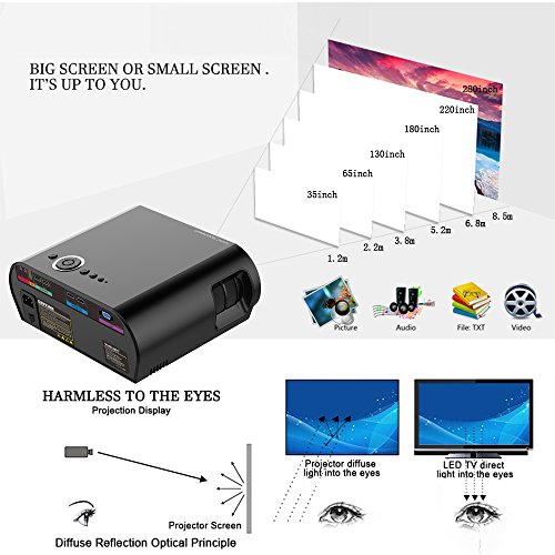 Docooler GP90 Proiettore Full Color 280" del Proiettore LED 3200 ANSI Lumen 1280 * 800 pixel 1 di Contrasto: 10000 con HD in VGA Porta USB AV per Laptop Portatili