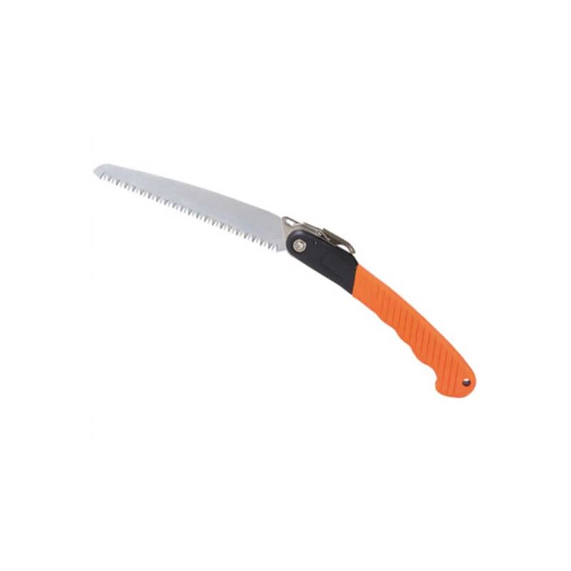 SEGACCIO A SERRAMANICO 180mm. Segaccio a serramanico nero e giallo 180 mm. Richiudibile. Lama forgiata a mano in acciaio al carbonio. Tripla affilatura e rivestita in cromo duro anti ruggine, tale da consentire tagli netti e decisi. Impugnatura nera ricoperta con gomma antiscivolo e di forma incurvata per ridurre gli sforzi durante le operazioni di taglio. Peso segaccio 200 grammi.
