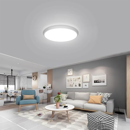 【Alta qualità】 La plafoniera rotonda da 24 W produce 2400 lumen con una temperatura di colore di 5000 K, fornendo una luce bianca neutra perfetta e naturale. La lampada ha una maschera con elevata trasmissione della luce e fornisce un'illuminazione sufficiente per ogni stanza. La luce è morbida e piacevole, quindi puoi star certo che è pratica.