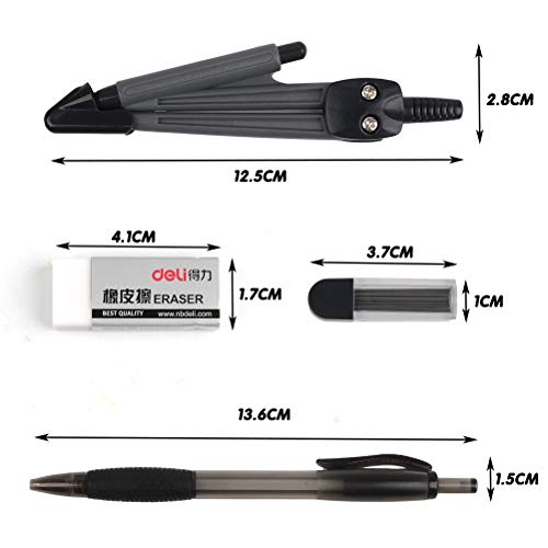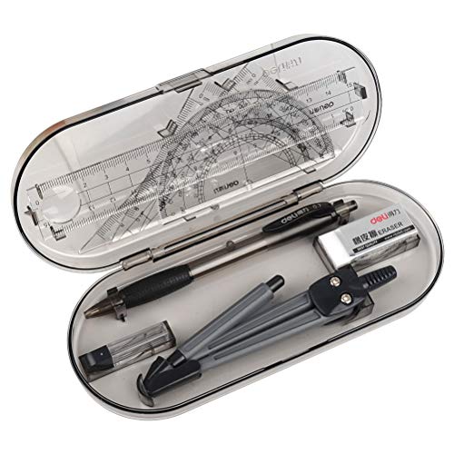 DODUOS 8 PCS Set Compassi per Tracciare Geometry Set Compasso di Disegno Matematica con Scatola, Include Righelli, Goniometro, Compasso, Matita Portamine 0,7mm, Mina di Matita, Gomma