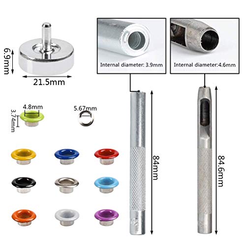 【Kit occhielli】 Un totale di 400 set di 10 colori degli occhielli con 3 pezzi di strumenti per occhielli tra cui una base, un punzone e uno strumento di installazione.