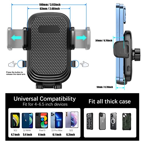 Il supporto per telefono per auto è adatto alla maggior parte delle auto, pick-up, SUV, camion e taxi. Il braccio flessibile del morsetto consente al supporto del telefono di adattarsi agli smartphone da 4"-6,5". Compatibile con iPhone 11/12/13/Pro Max/Pro Samsung GalaxyNote20/S22/S22+/S22Ultra/S21Ultra/S20Ultra/S20FE/S21FE/S10/S10+/S10e,Sony, LG, Google, Sony, Nokia (▲Non adatto per custodia del telefono a portafoglio, custodia del telefono con porta anelli, porta carte magnetiche).