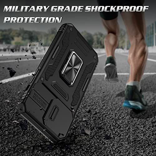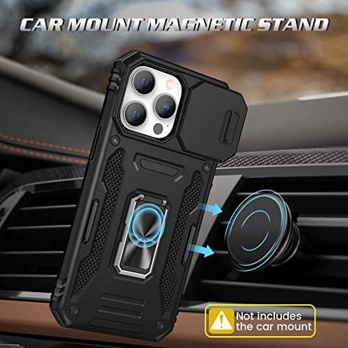Doeshine Cover iPhone 14 Pro Max, con 2 Pellicola Vetro Temperato, 360° Metallo Rotante Anello, Cover per Fotocamera Scorrevole, TPU Bumper Case Custodia per iPhone 14 Pro Max 5G (Nero)