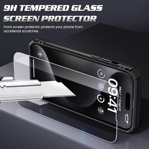 [Protezioni Schermo e Fotocamera]: 2 pellicole protettive per lo schermo in vetro temperato e una delicata copertura scorrevole per obiettivo della fotocamera, possono proteggere l'obiettivo del tuo iPhone 15 Pro Max da eventuali danni. Design esclusivo della copertura della fotocamera con cornice rialzata da 0,2 mm per nascondere perfettamente la fotocamera, il che non solo aumenta la sicurezza, ma ha anche un senso di tecnologia.
