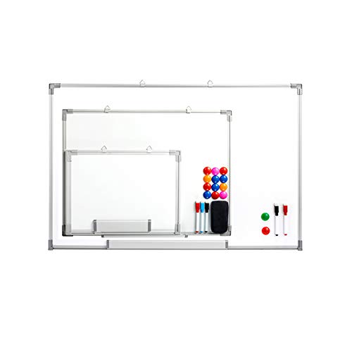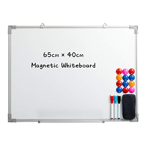 DOEWORK Lavagna Bianca Magnetica, 60 x 45cm, Lavagna Bianca Cancellabile a secco con 3 Pennarelli 12 Magneti 1 Gomma, Lavagna Bianca a secco per Casa, Scuola, Ufficio