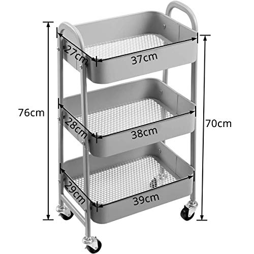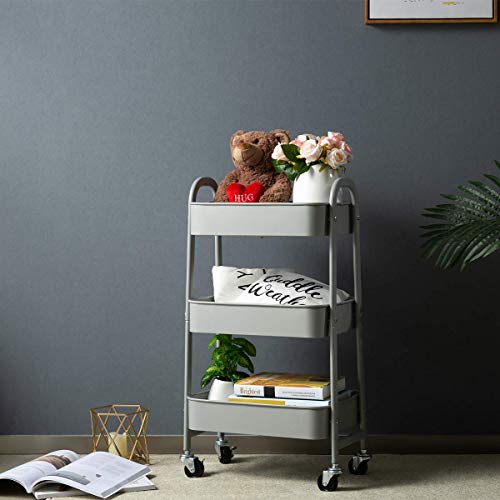 DOEWORKS Carrello portaoggetti Carrello a 3 Piani in Metallo Carrello portaoggetti Organizer Carrello con Ruote per Cucina Trucco Bagno Ufficio, Grigio