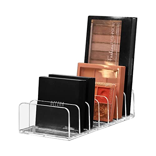 Ampio organizer trasparente per la conservazione dei cosmetici 17,2 * 12,5 * 4,3 cm, 7 sezioni divise forniscono spazio per una varietà di tavolozze per il trucco e altri articoli cosmetici.