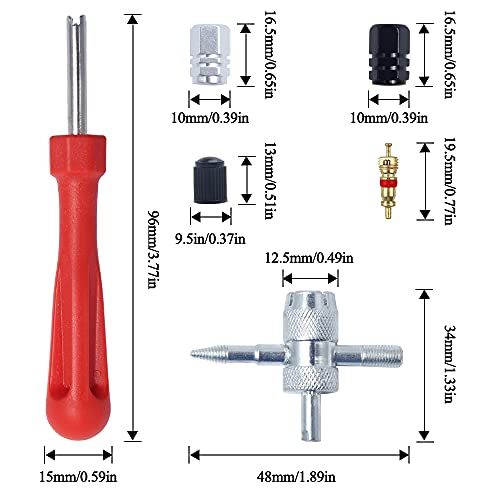 【Ampiamente utilizzato】Kit di riparazione per valvole e pneumatici adatti a tutte le auto, moto, moto, camion, auto, moto, camion, si può facilmente rimuovere e stringere il nucleo della valvola, è uno strumento ideale per la riparazione degli pneumatici.