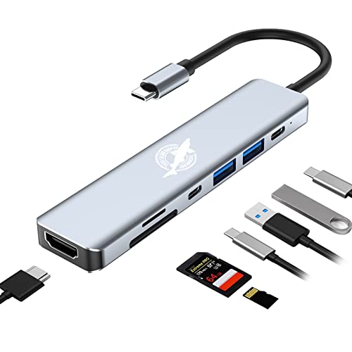 Dogfish Hub USB C, Docking Station USB C, Adattatore multiporta compatibile da USB C 7 in 1 a HDMI per laptop MacBook Pro USB C, con 4K HDMI USB 3.0 e lettore di schede USB 2.0 SD/TF