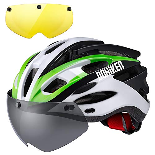 Dohiker Casco Bici Casco Bici Uomo/Donna con Luce LED Certificato CE per la Sicurezza Casco per Adulti Leggero con Visiera Rimovibile/Donne/Giovani per Montagna e Strada Skateboarding Sci