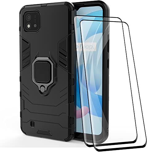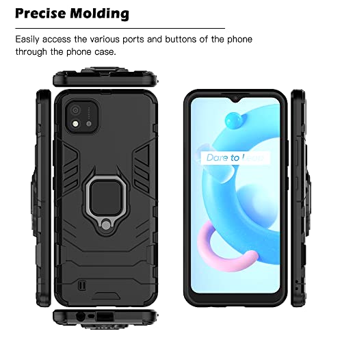 DOINK Cover Armor per Realme C11 (2021), Custodia TPU+PC Antiurto con Anello Supporto [con 2 Pezzi Vetro Temperato Pellicola Schermo ] - Nero