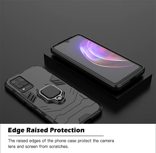 DOINK Cover Armor per Vivo V21 5G, Custodia TPU+PC Antiurto con Anello Supporto [con 2 Pezzi Vetro Temperato Pellicola Schermo ] - Nero