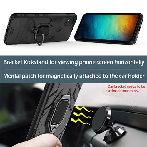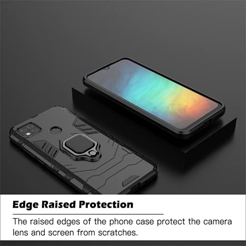 DOINK Cover Armor per Xiaomi Redmi 10A / Redmi 9C / 9C NFC, Custodia TPU+PC Antiurto con Anello Supporto - Nero