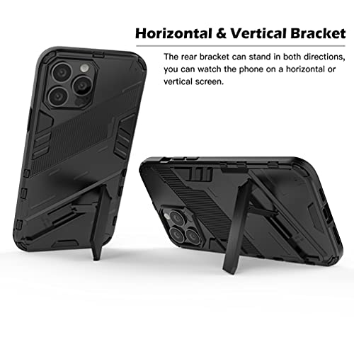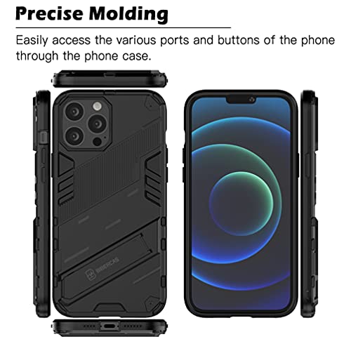 DOINK Cover Custodia per iPhone 13 PRO Max 6.7", Case Armor PC+TPU Rugged Antiurto Cover con Cavalletto - Nero