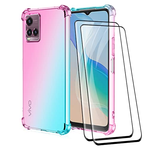 DOINK Cover Pendenza Colorato per Vivo Y21 | Y21S | Y33S, Custodia Traslucido Silicone TPU con Antiurto Bumper [ con Pellicola Vetro Temperato ] - Rosa-Verde