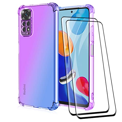 DOINK Cover Pendenza Colorato per Xiaomi Redmi Note 11S 4G / Note 11, Custodia Traslucido Silicone TPU con Antiurto Bumper [ con Pellicola Vetro Temperato ] - Viola-Blu