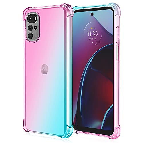 DOINK Custodia Colorata Pendenza per Motorola Moto G22, Traslucido TPU Silicone Custodia con Antiurto Bumper - Rosa Verde