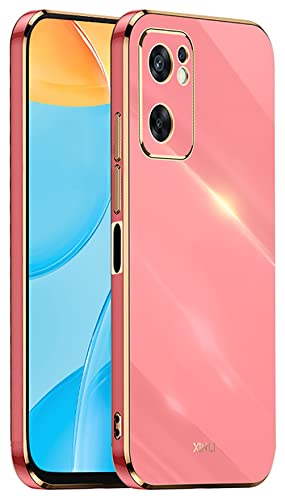 DOINK Custodia per Oppo Find X5 Lite, Cover per Telefono in Silicone TPU Colorata e Lucida con Design Bordo Dorato - Rosso