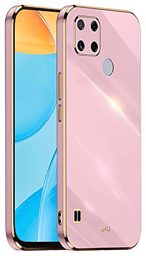DOINK Custodia per Realme C25Y / C25-Y, Cover per Telefono in Silicone TPU Colorata e Lucida con Design Bordo Dorato - Viola
