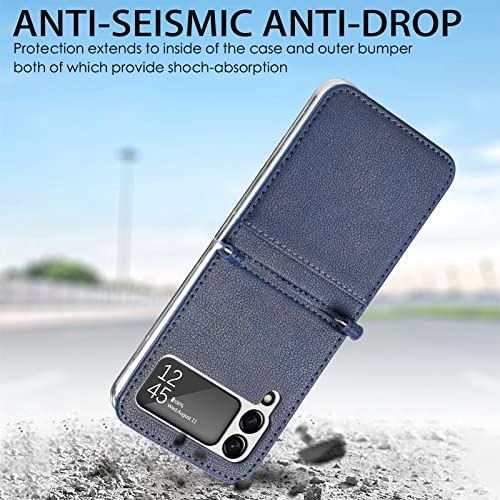 DOINK Custodia per Samsung Galaxy Z Flip 3 (2021) Cover Case per Telefono in Pelle PU di Alta qualità con Slot per Schede - Blu
