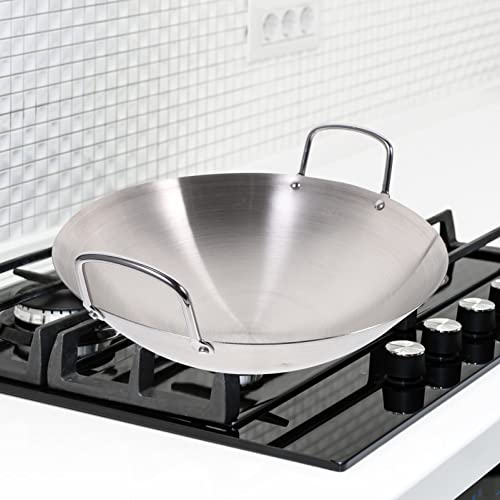 DOITOOL Wok in Acciaio Inox Padelle Wok Tradizionali Cinesi Giapponesi Padella Pentola con Doppio Manico Fondo Tondo Padella Antiaderente Pentole per Cucina Argento 26 Cm