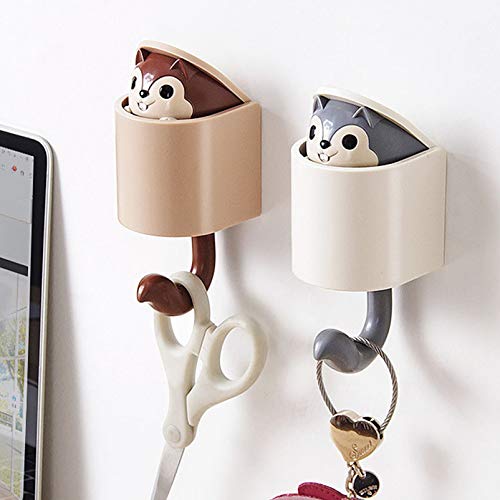 DOITOOL Cartoon Squirrel Wall Plug Hook Hanging Key Hook Wall Clothes Hanger for Kitchen Bathroom Coat Hat (Brown)
