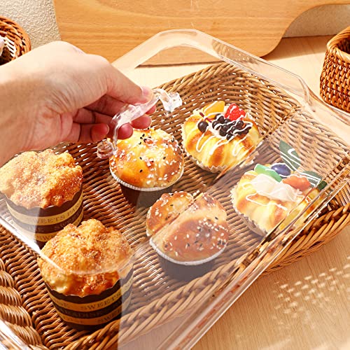 DOITOOL Cestino Per Il Pane In Vimini Per Servire Cestino Per Il Pane In Simil Rattan Con Coperchio In Acrilico Cesto Per Servire Il Cibo Tavolo Intrecciato Cesto Di Per