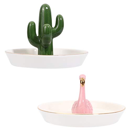 Anello in ceramica Porta gioielli Decor Flamingo Cactus Shape Dish Organizer Bracciali Orecchini Vassoio gingillo per donne Regalo di compleanno per ragazze.