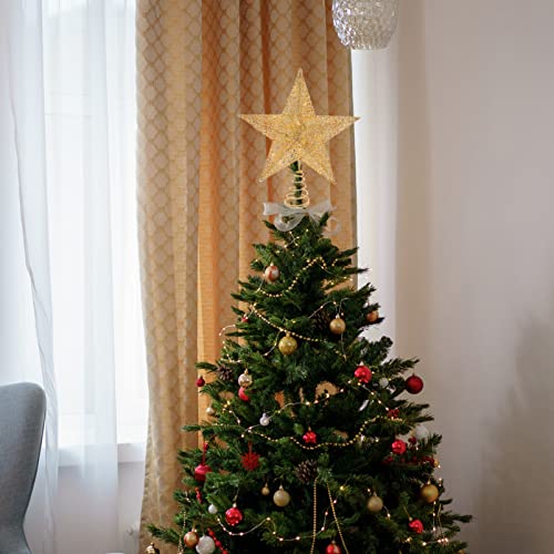 DOITOOL - Puntale per Albero di Natale Stella Glitterata in Ferro Dorato Decorazione Natalizia per Albero di Natale Oro