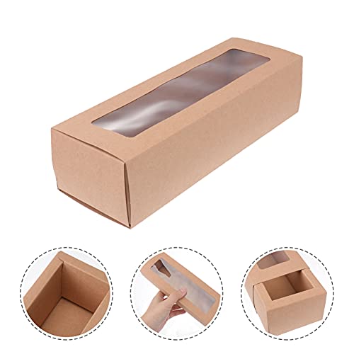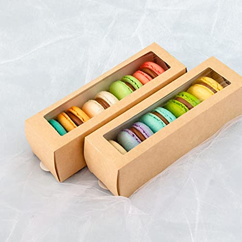 Design trasparente della finestra visiva. Queste semplici scatole di carta kraft hanno una finestra di plastica trasparente e sono perfette per esporre i tuoi macarons francesi fatti a mano, piccoli biscotti da tè o qualsiasi dolce da forno fatto in casa.