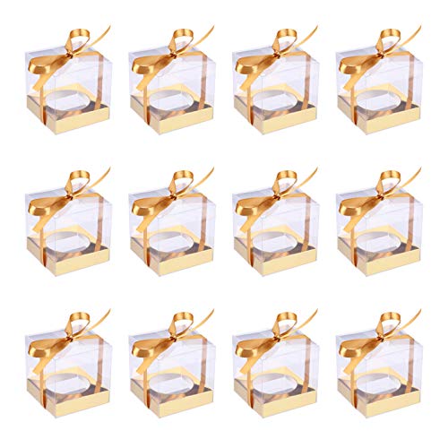 DOITOOL 12 scatole per Cupcake in plastica Trasparente, Scatola Regalo per Muffin e Cupcake, Scatola Regalo per Natale, Compleanno, Anniversario, Dorato